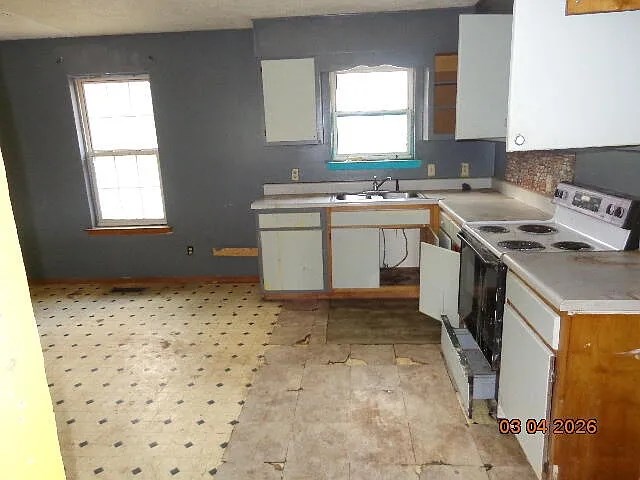 Fixer upper on .56 flat acres. Split bedroom floorplan