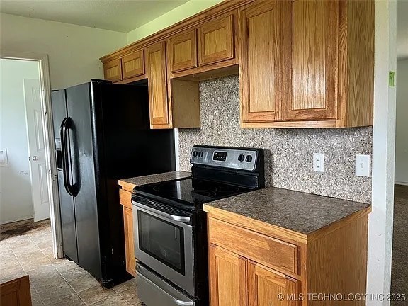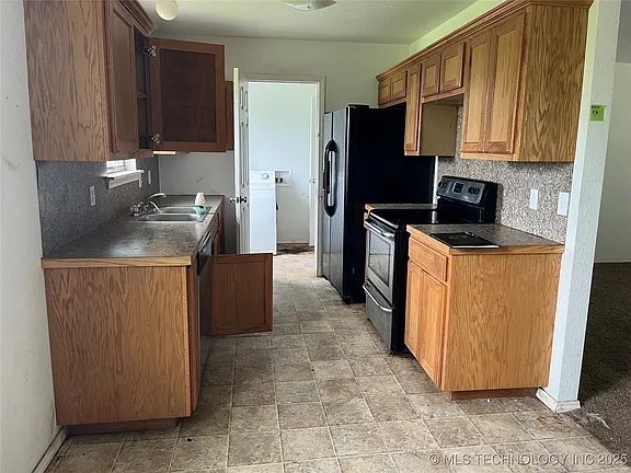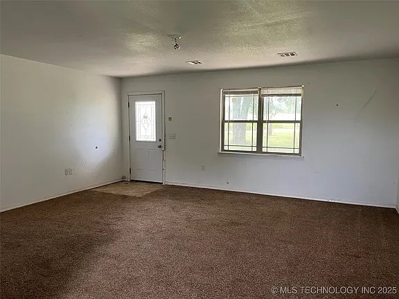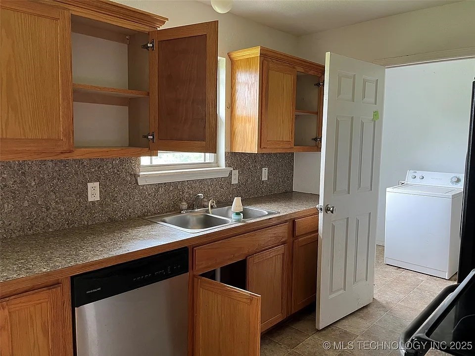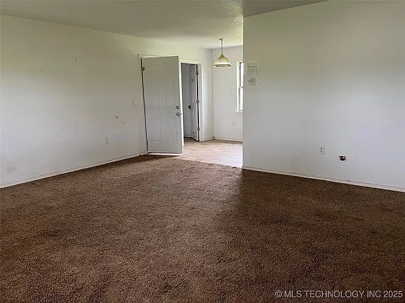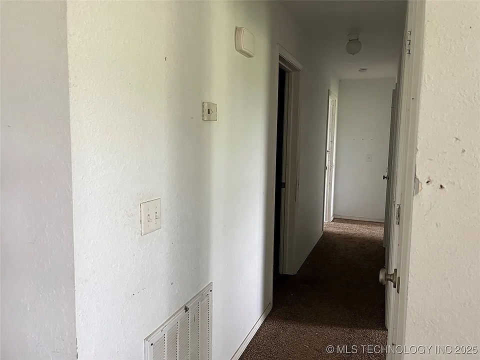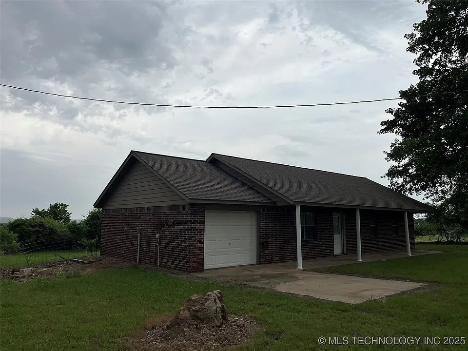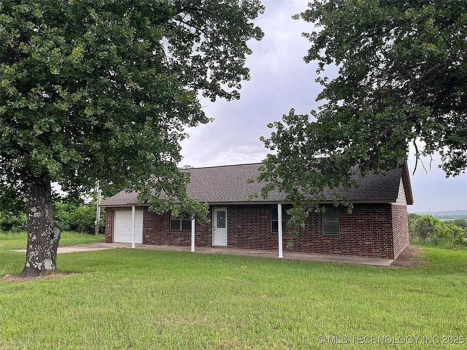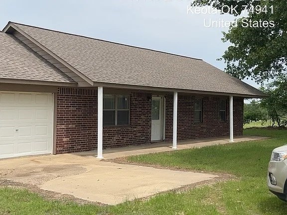 This spacious brick home has a beautiful panoramic view of the rolling hillsides. Located just outside Keota and conveniently near the Kerr Reservoir. The living, dining, and kitchen areas are open, but comfortably separated. Three bedrooms and two full baths make this an ideal floor plan. The garage and laundry are separate for convenience and storage. The yard is partially fenced with a shed and an outbuilding. Great for investors or owner-occupied fixer-upper!